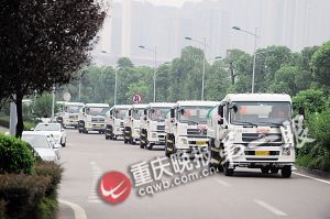 這次婚車創(chuàng)意,并不出自新人和婚慶公司,而是來自新娘的公司。這家民營企業(yè)承包了南濱路的道路保潔,這12輛灑水車是公司去年剛購置的,發(fā)喜糖時,公司老總突發(fā)奇想,要用公司的灑水車緊跟婚車隊伍,表示祝福。